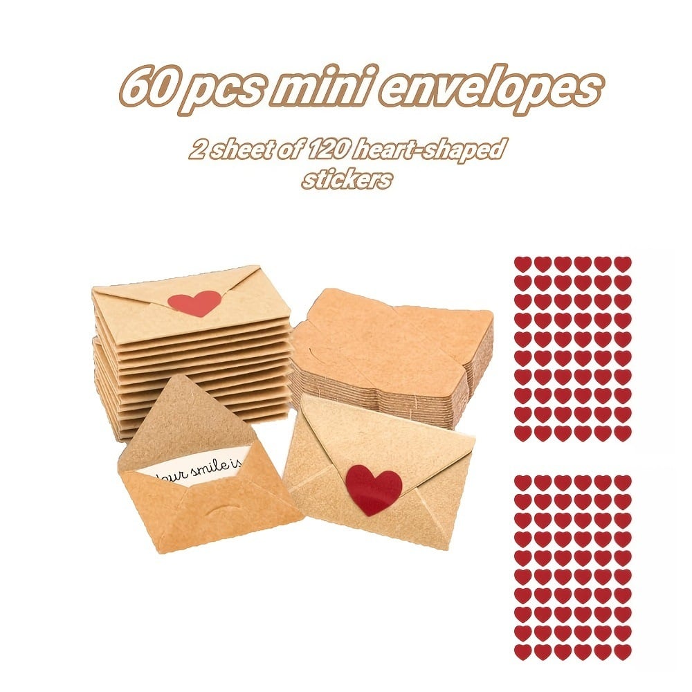 ✨ 60× Mini Kraft Envelopes – Cute, romantic & keeps notes private